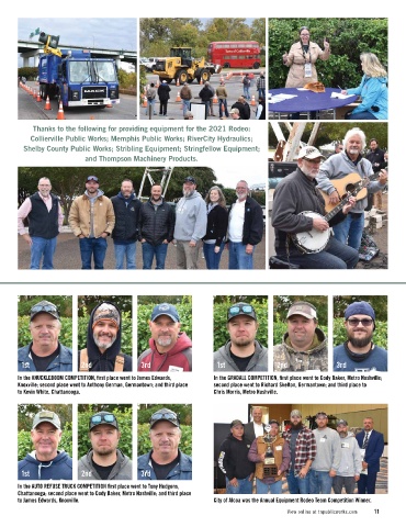 In the KNUCKLEBOOM COMPETITION, first place went to James Edwards, In the GRADALL COMPETITION, first place went to Cody Baker, Metro Nashville;