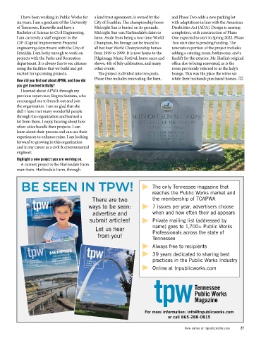 projects with the Parks and Recreation Pilgrimage Music Festival, horse races and facelift for the exterior. Mr. Harlin’s original