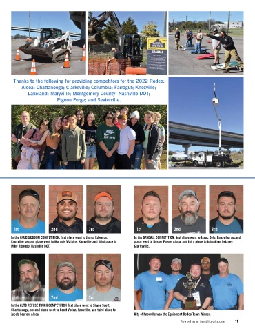 In the KNUCKLEBOOM COMPETITION, first place went to James Edwards, In the GRADALL COMPETITION, first place went to Isaac Ogle, Knoxville; second