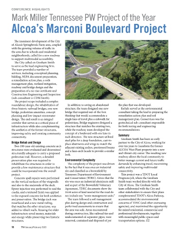 and preservation. The bridge deck was The team followed a soil management accommodated the environmental