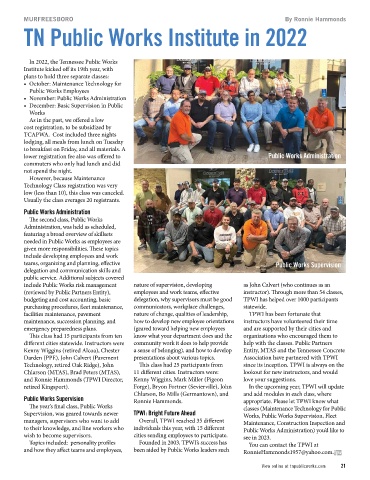 Public Works Supervision Ronnie Hammonds. appropriate. Please let TPWI know what