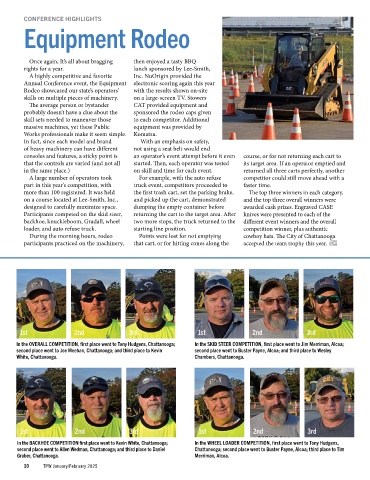 In the BACKHOE COMPETITION first place went to Kevin White, Chattanooga; In the WHEEL LOADER COMPETITION, first place went to Tony Hudgens,