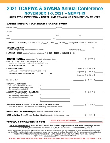 YOU WILL NOT HAVE A BOOTH IF PAYMENT IS NOT RECEIVED BY THE REGISTRATION DEADLINE – OCTOBER 4, 2021