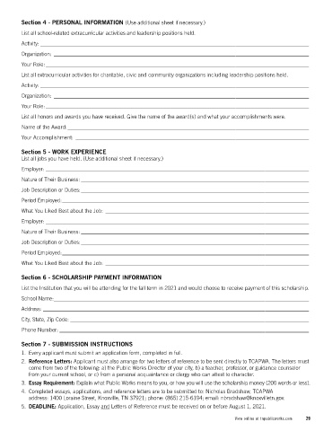 3. Essay Requirement: Explain what Public Works means to you, or how you will use the scholarship money (200 words or less).