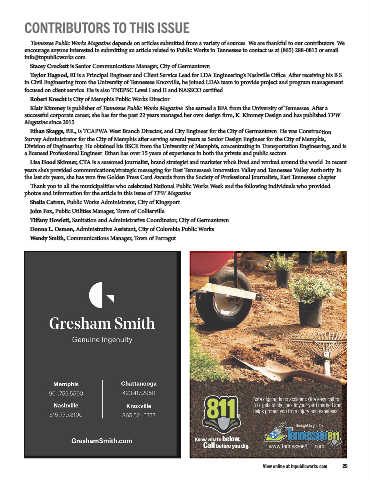 Tennessee Public Works Magazine depends on articles submitted from a variety of sources. We are thankful to our contributors. We