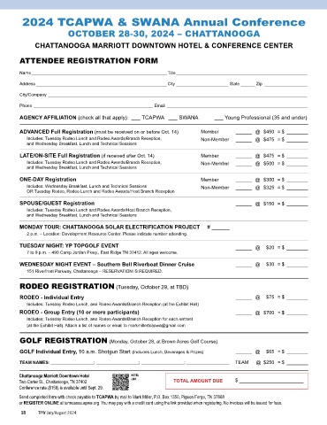 or REGISTER ONLINE at tennessee.apwa.org. You may pay with a credit card using the link provided when registering. No invoices will be issued for fees.