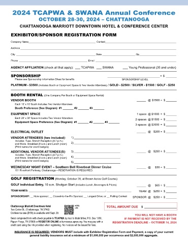Pigeon Forge, TN 37868 or REGISTER ONLINE at tennessee.apwa.org. You may pay with a REGISTRATION DEADLINE – OCTOBER 14, 2024