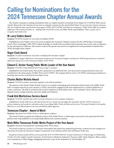 October 30 at the Chapter Awards Ceremony. Award winners will also be featured in Tennessee Public Works Magazine. Please submit