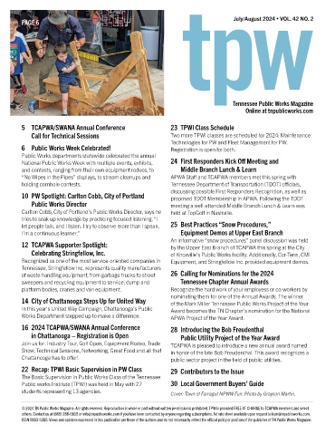 © 2024 TN Public Works Magazine. All rights reserved. Reproduction in whole or part without written permission is prohibited. TPW is provided FREE OF CHARGE to TCAPWA members and select