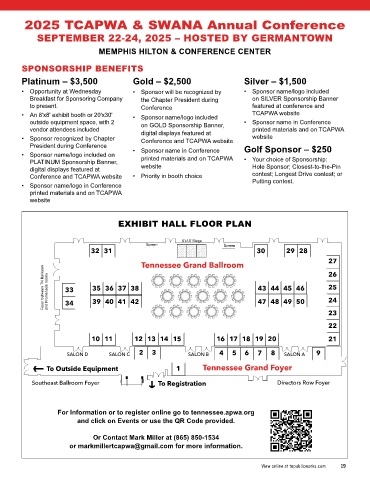 • An 8'x8' exhibit booth or 20'x30' • Sponsor name/logo included TCAPWA website