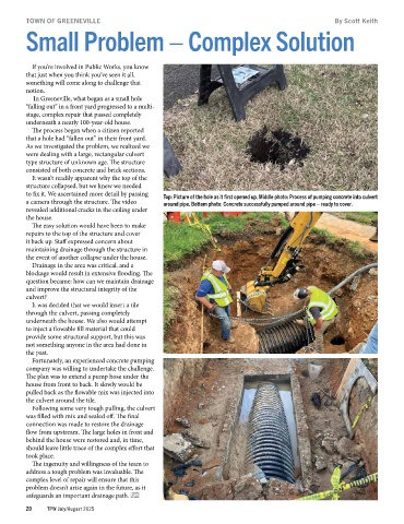 to fix it. We ascertained more detail by passing Top: Picture of the hole as it first opened up. Middle photo: Process of pumping concrete into culvert