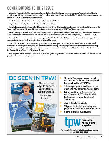 contributors. We encourage anyone interested in submitting an article related to Public Works in Tennessee to contact us