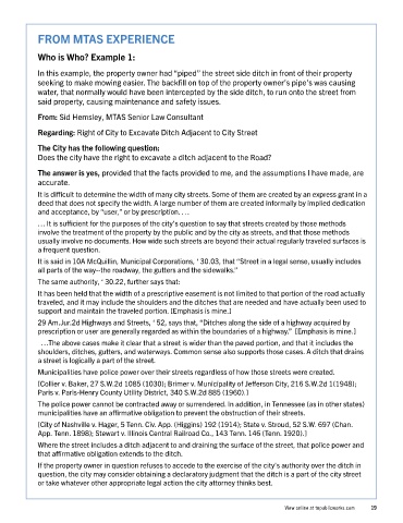 question, the city may consider obtaining a declaratory judgment that the ditch is a part of the city street
