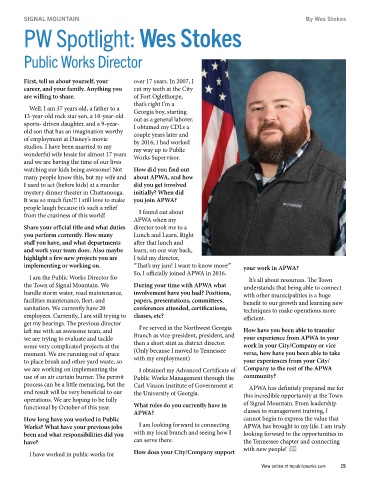 the Town of Signal Mountain. We During your time with APWA what understands that being able to connect