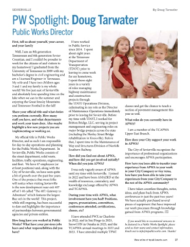 and fleet. We have 67 employees (or When did you join APWA? How have you been able to transfer your