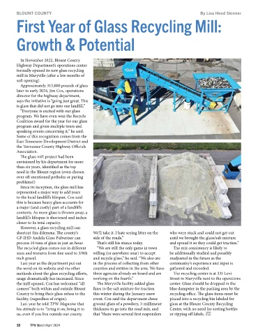 Last year he told TPW Magazine that ground glass of a powdery, 3-millimeter glass at the Blount County Recycling
