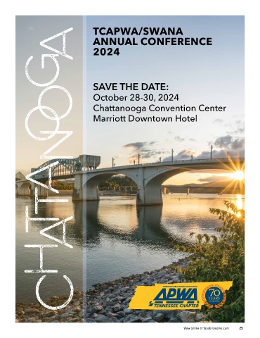TCAPWA/SWANA ANNUAL CONFERENCE 2024 SAVE THE DATE: October 28-30, 2024 Chattanooga Convention Center Marriott Downtown Hotel View online at tnpublicworks.com 25