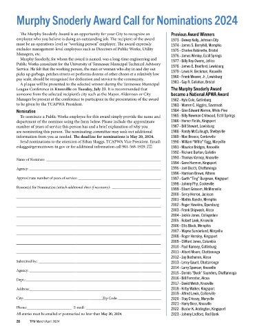 To nominate a Public Works employee for this award simply provide the name and 1985 - Billy Newman Chitwood, Estill Springs