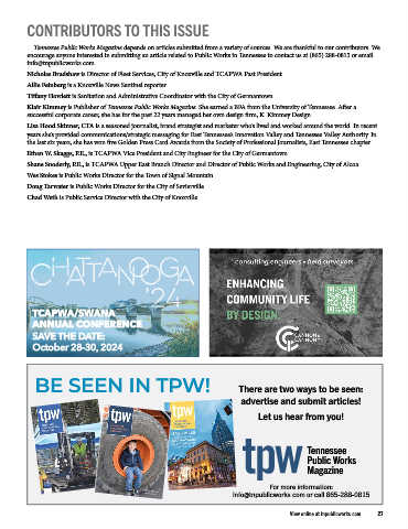 Tennessee Public Works Magazine depends on articles submitted from a variety of sources. We are thankful to our contributors. We