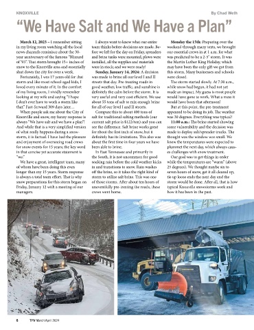 Friday, January 12 with a meeting of our uneventfully pre-treating the roads, these typical Knoxville snowstorms work and