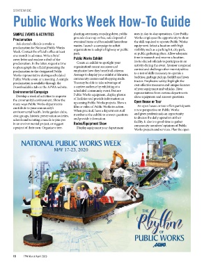 the community’s environment. Show the film or video of Public Works in action. An open house or tour offers participants