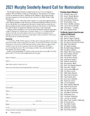 A plaque will be presented to the selected winner during the Tennessee Municipal The Murphy Snoderly Award became