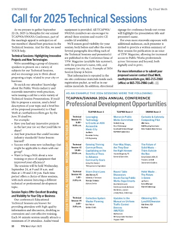 Technical Session Presentations. If you’d TCAPWA/SWANA 2024 ANNUAL CONFERENCE