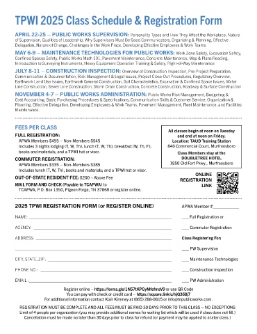2025 TPWI REGISTRATION FORM (or REGISTER ONLINE) APWA Member #___________