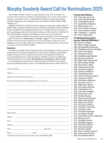 To nominate a Public Works employee for this award simply provide the name and 1985 - Billy Newman Chitwood, Estill Springs