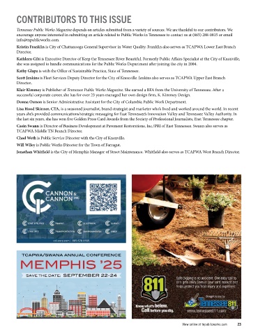 encourage anyone interested in submitting an article related to Public Works in Tennessee to contact us at (865) 288-0815 or email