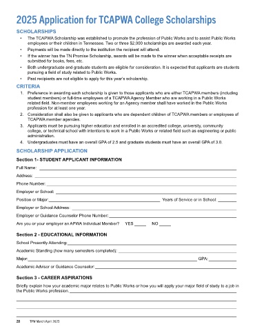 • The TCAPWA Scholarship was established to promote the profession of Public Works and to assist Public Works
