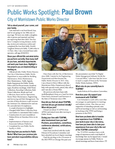 • Changed Solid Waste Collection from I found out about TCAPWA from in teaching at the TPWI and being a