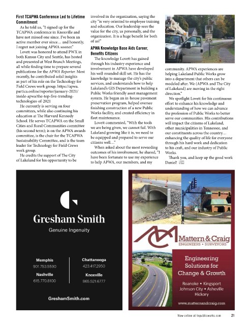 publications for the APWA Reporter. Most his well-rounded skill set. He has the other municipalities in Tennessee, and