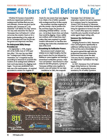 FOCUS ON: TENNESSEE 811 By Craig Ingram