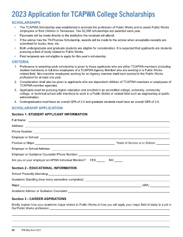 • The TCAPWA Scholarship was established to promote the profession of Public Works and to assist Public Works