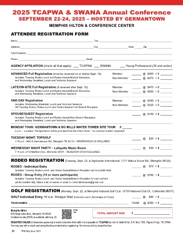 REGISTER ONLINE at tennessee.apwa.org or send completed form with check payable to TCAPWA by mail to Mark Miller, P.O. Box 1350, Pigeon Forge, TN 37868 .