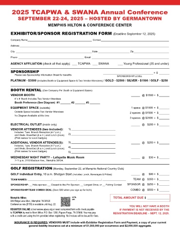 to TCAPWA by mail to Mark Miller, P.O. Box 1350, Pigeon Forge, TN 37868. You may pay REGISTRATION DEADLINE – SEPT. 12, 2025.