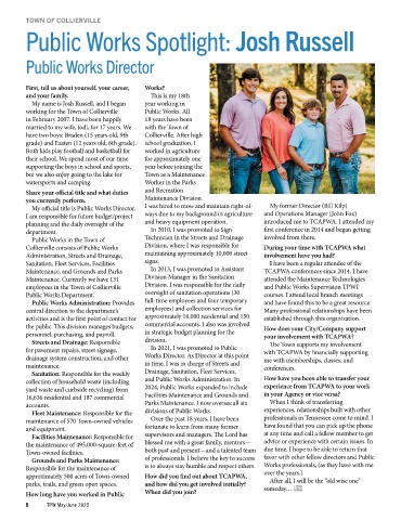 Collierville consists of Public Works Division, where I was responsible for During your time with TCAPWA what
