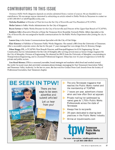 contributors. We encourage anyone interested in submitting an article related to Public Works in Tennessee to contact us