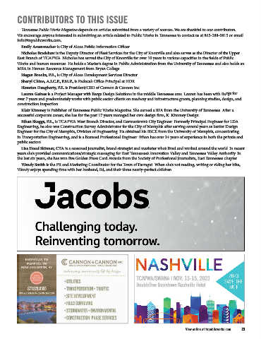 Tennessee Public Works Magazine depends on articles submitted from a variety of sources. We are thankful to our contributors.