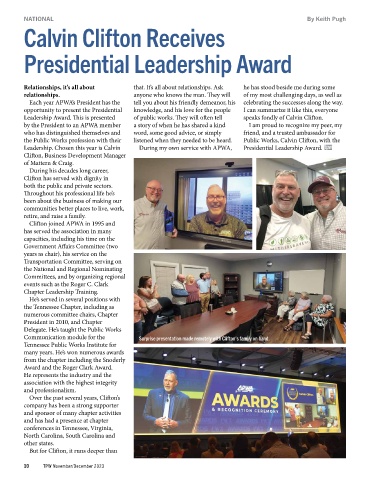 Leadership Award. This is presented of public works. They will often tell speaks fondly of Calvin Clifton.