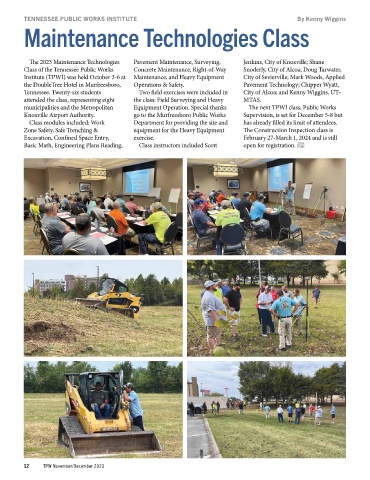 Institute (TPWI) was held October 3-6 at Maintenance, and Heavy Equipment City of Sevierville; Mark Woods, Applied
