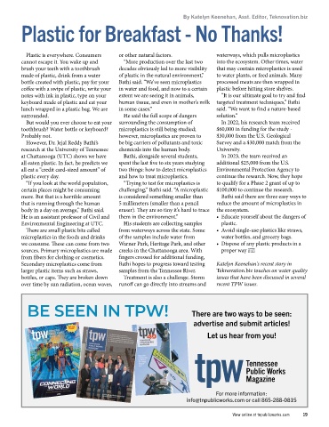 larger plastic items such as straws, samples from the Tennessee River. Teknovation.biz touches on water quality