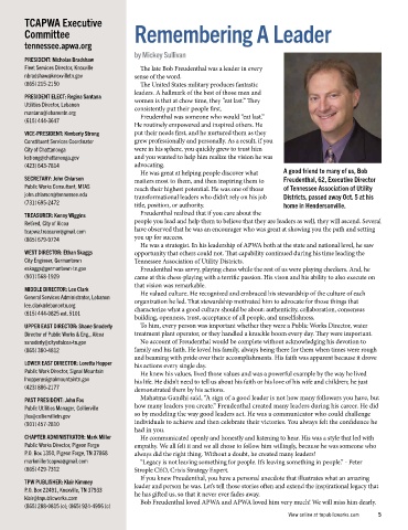 (865) 288-0815 (o); (865) 924-4956 (c) Bob Freudenthal loved APWA and APWA loved him very much! We will miss him dearly.
