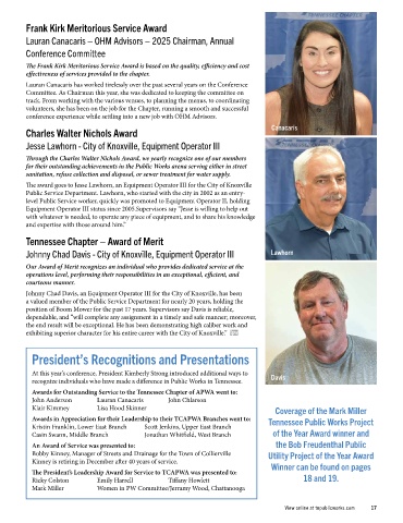 Awards for Outstanding Service to the Tennessee Chapter of APWA went to:
