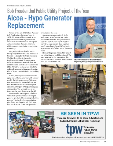 takes fully saturated brine, mixes it with if we had contracted it out.” Engineering, Alcoa, proudly accepted the award.