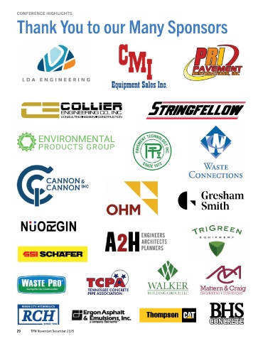 CONFERENCE HIGHLIGHTS Thank You to our Many Sponsors -------• SINCE 1982 20 TPW November/December 2025