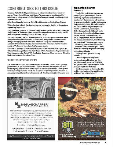 Tennessee Public Works Magazine depends on articles submitted from a variety of To all of the individuals who were an
