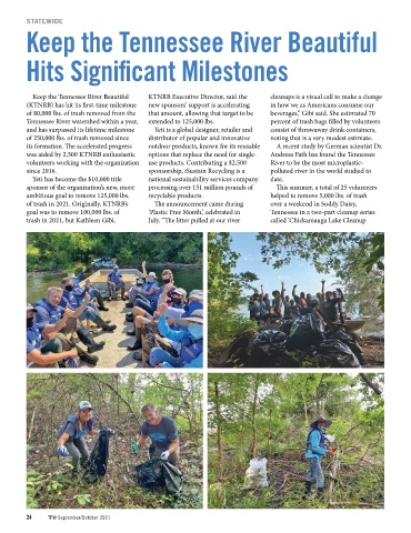 Tennessee River watershed within a year, extended to 125,000 lbs. percent of trash bags filled by volunteers