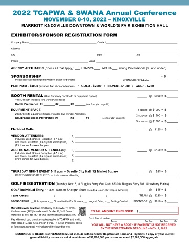 at Tennessee.apwa.net. No invoices will be issued for fees. YOU WILL NOT HAVE A BOOTH IF PAYMENT IS NOT RECEIVED